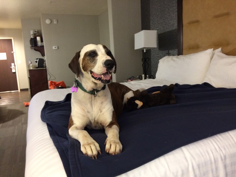 Big smile from Willa to be in a real bed
