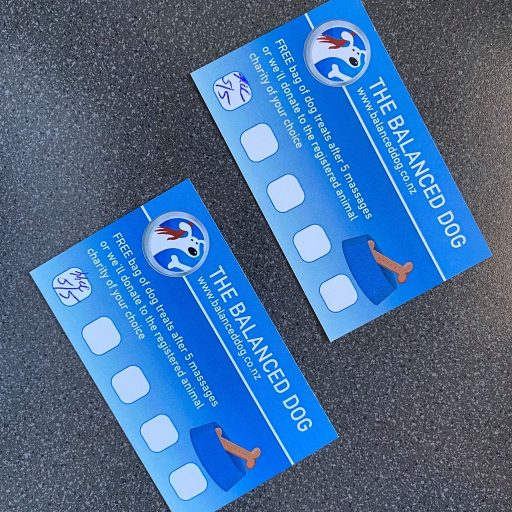 In my business, I offer a loyalty card. After every five sessions of massage and physical therapy, the owner earns a free bag of our dog treats. Owners have the option, however, to donate the cost of their bag to a registered animal charity of their choice, although most leave the choice up to me. I rotate the donations.