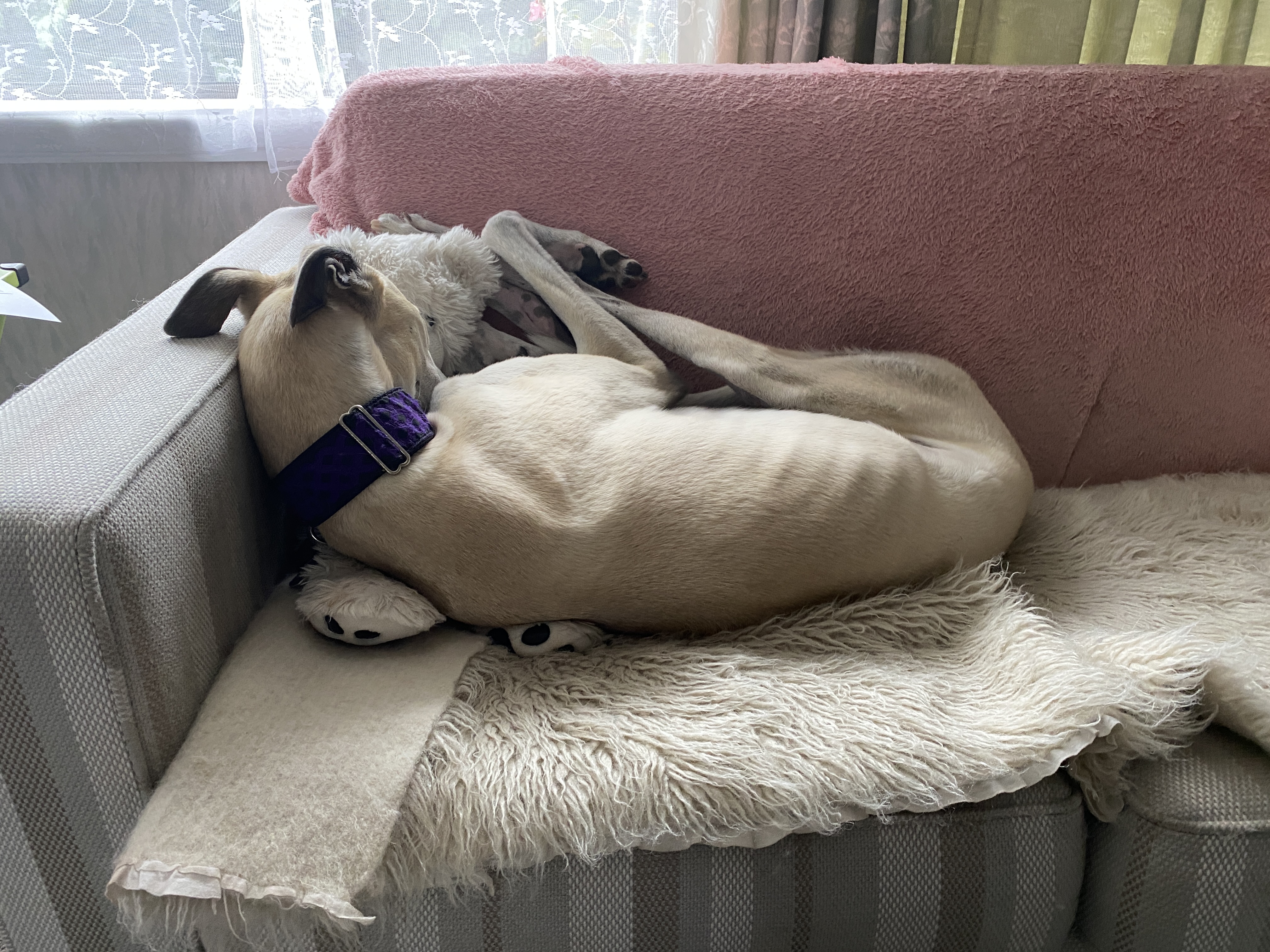 Cuddle Teddy is special. I found him in a giveaway box at a local op shop shortly after adopting Sox. Sox had plenty of toys, but all were hand-me-downs from previous dogs. I felt he needed his own teddy. Since then, Sox will gently mouth Cuddle Teddy and sleeps with him on the couch. He has never shown any inclination to tear or rip Cuddle Teddy and, when Cuddle Teddy gets grey from all the saliva and mouthing, I will give him a wash. This upsets Sox very much and he will throw Cuddle Teddy around in the hope of getting him to smell better.